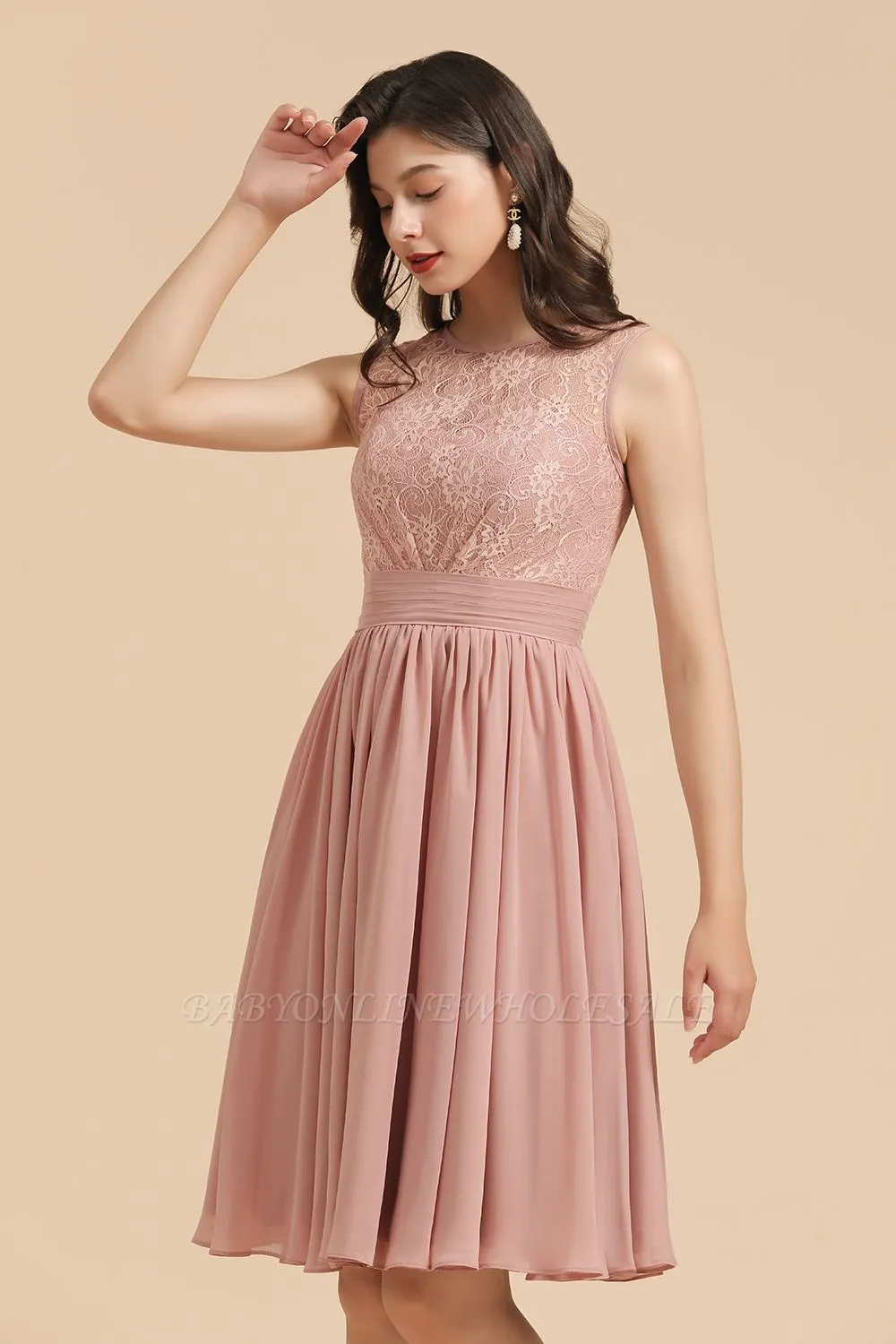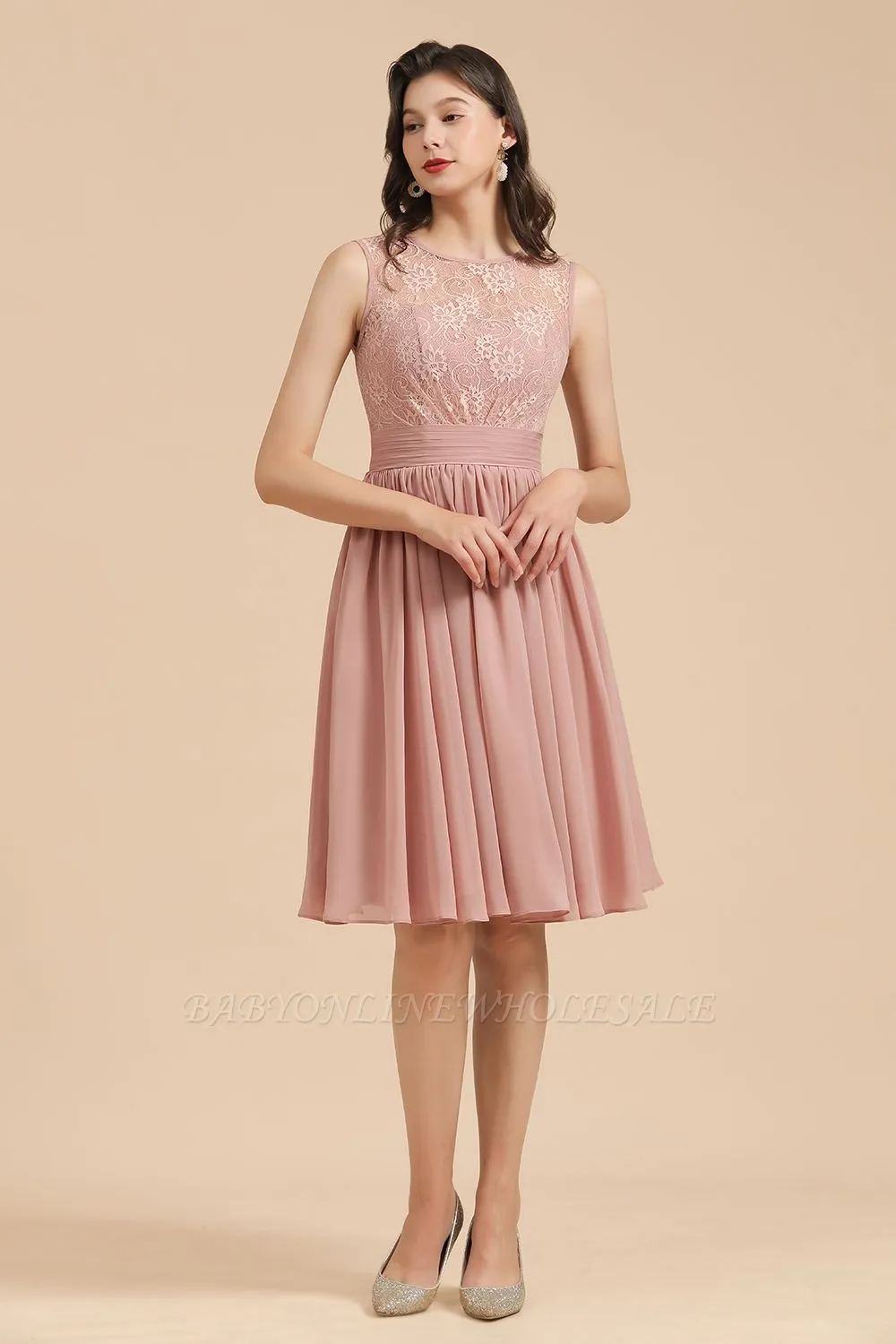 Babyonlinewholesale offers Elegant Sleeveless Crew Neck Lace Homecoming Dress Short Cocktail Party Dress at a good price from White,Ivory,Blushing Pink,Candy Pink,Pearl Pink,Dusty Rose,Watermelon,Red,Fuchsia,Burgundy,Chocolate,Brown,Gold,Champagne,Orange,Taupe,Yellow,Daffodil,Regency,Grape,Lilac,Lavender,Sky Blue,Pool,Ocean Blue,Royal Blue,Ink Blue,Dark Navy,Black,Gray,Silver,Dark Green,Jade,Peacock,Lime Green,Green,Sage,Mint Green,Dusk,Mist,Stormy,Dusty Blue,Dusty Sage,Orchid,Wisteria,Mulberry,Coral,Steel Grey,Cabernet,Rust,Emerald,Vintage Mauve,100D Chiffon to A-line Mini them. Stunning yet affordable Sleeveless Bridesmaid Dresses.