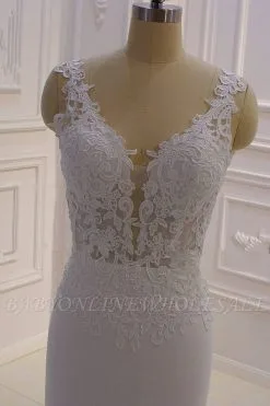 | product name | Elegant Sleeveless Lace V-neck Column White Court Train Wedding Dress |