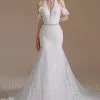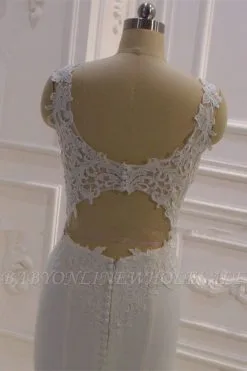 Be the first to review “Elegant Sleeveless Lace V-neck Column White Court Train Wedding Dress” Cancel reply