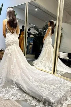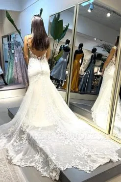 Be the first to review “Elegant Sleeveless V-Neck Mermaid Wedding Dress Tulle Lace Appliques Bridal Dress” Cancel reply