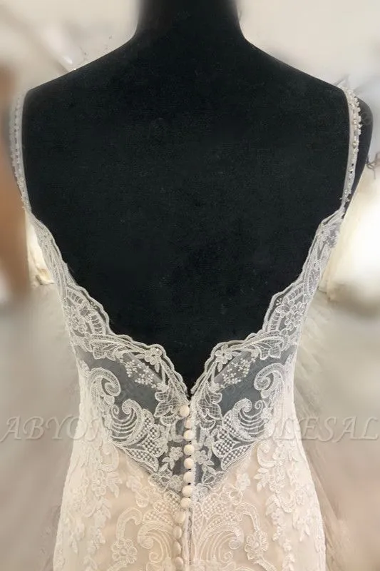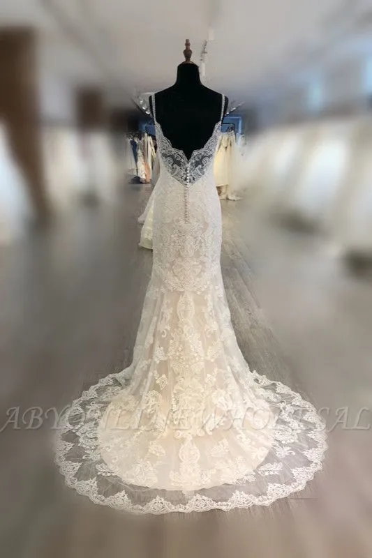 | product name | Elegant Spaghetti Strap Sleeveless Mermaid Wedding Dress with Appliques Pearls |