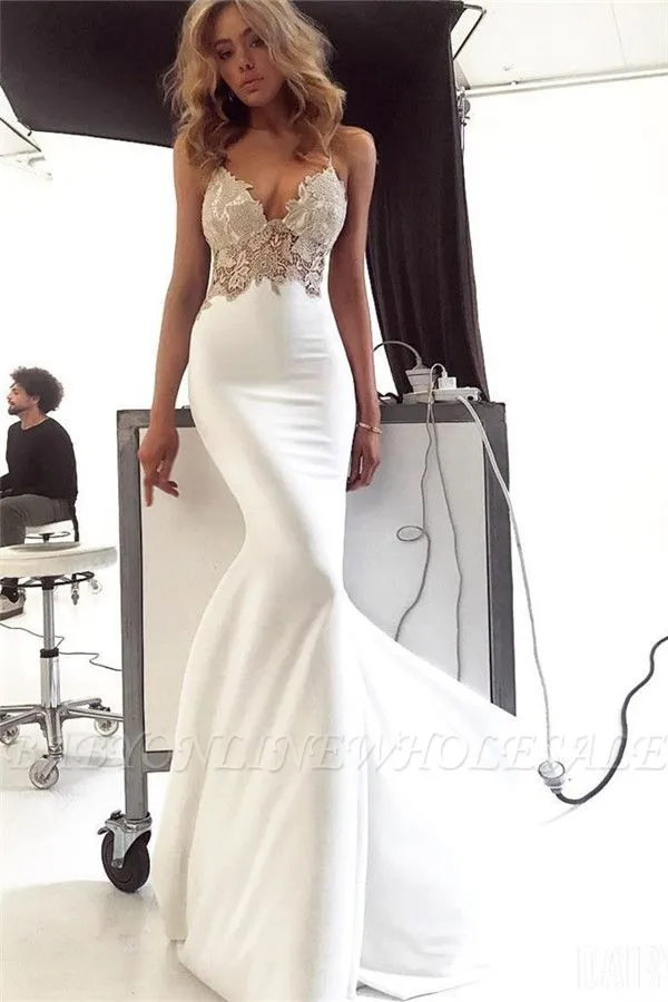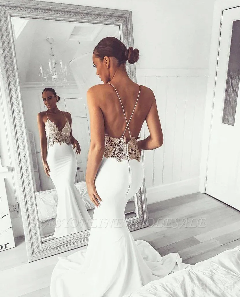 | product name | Elegant Spaghetti-Straps Backless Appliques Mermaid Wedding Dress |