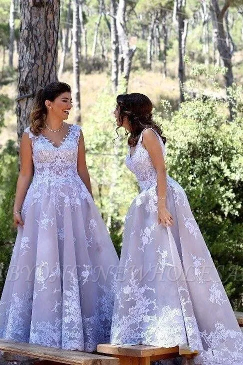 | product name | Elegant Straps Appliques V-Neck Sleeveless A-Line Bridesmaid Dress |