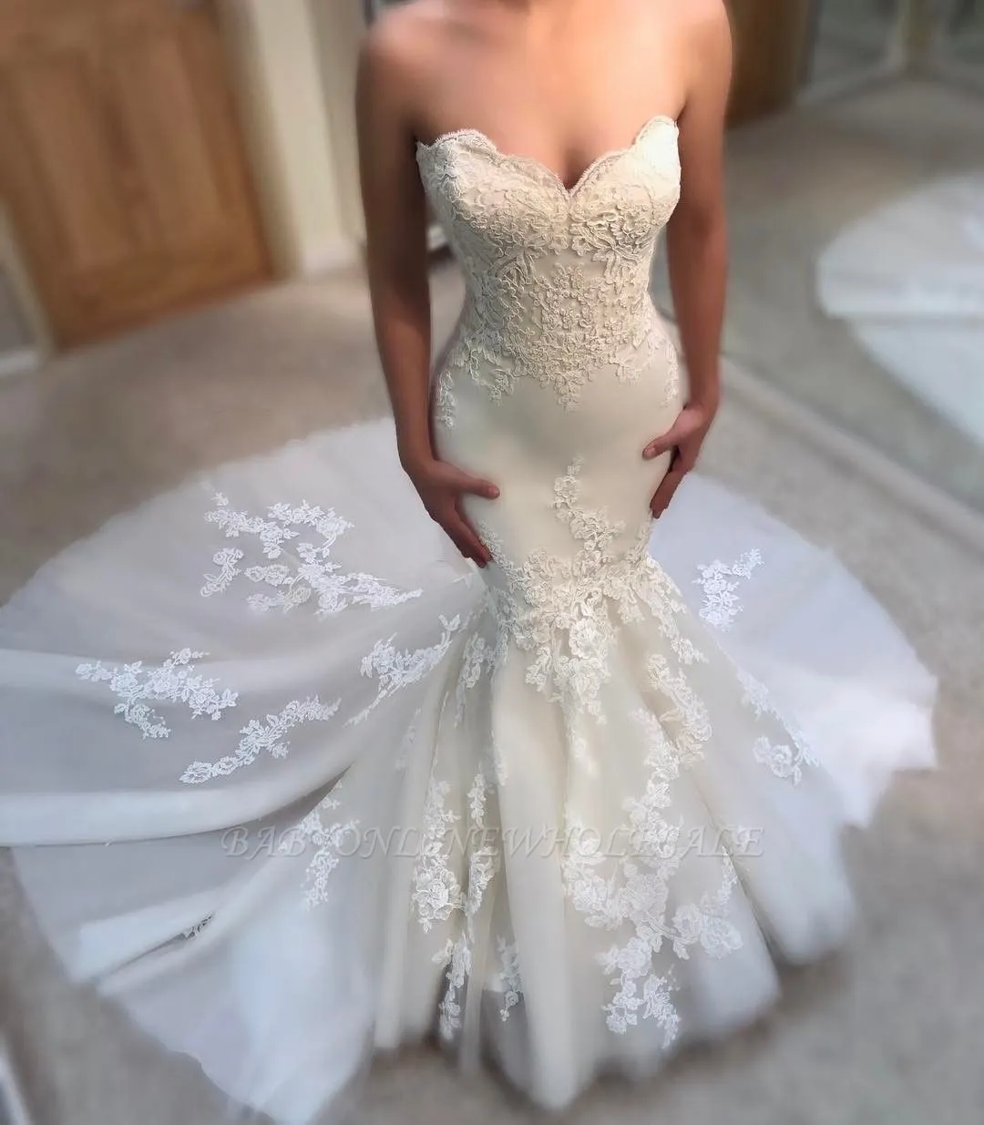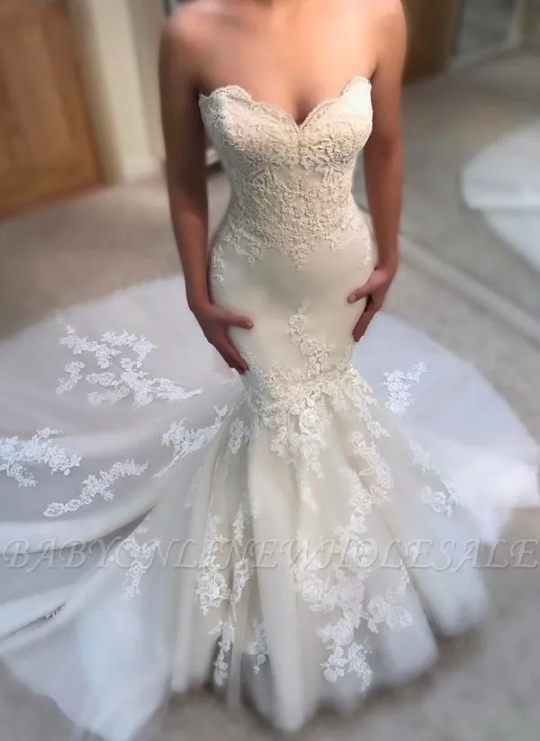Sweetheart Mermaid Wedding Dress Online | Sexy Strapless Lace Bridal Gowns