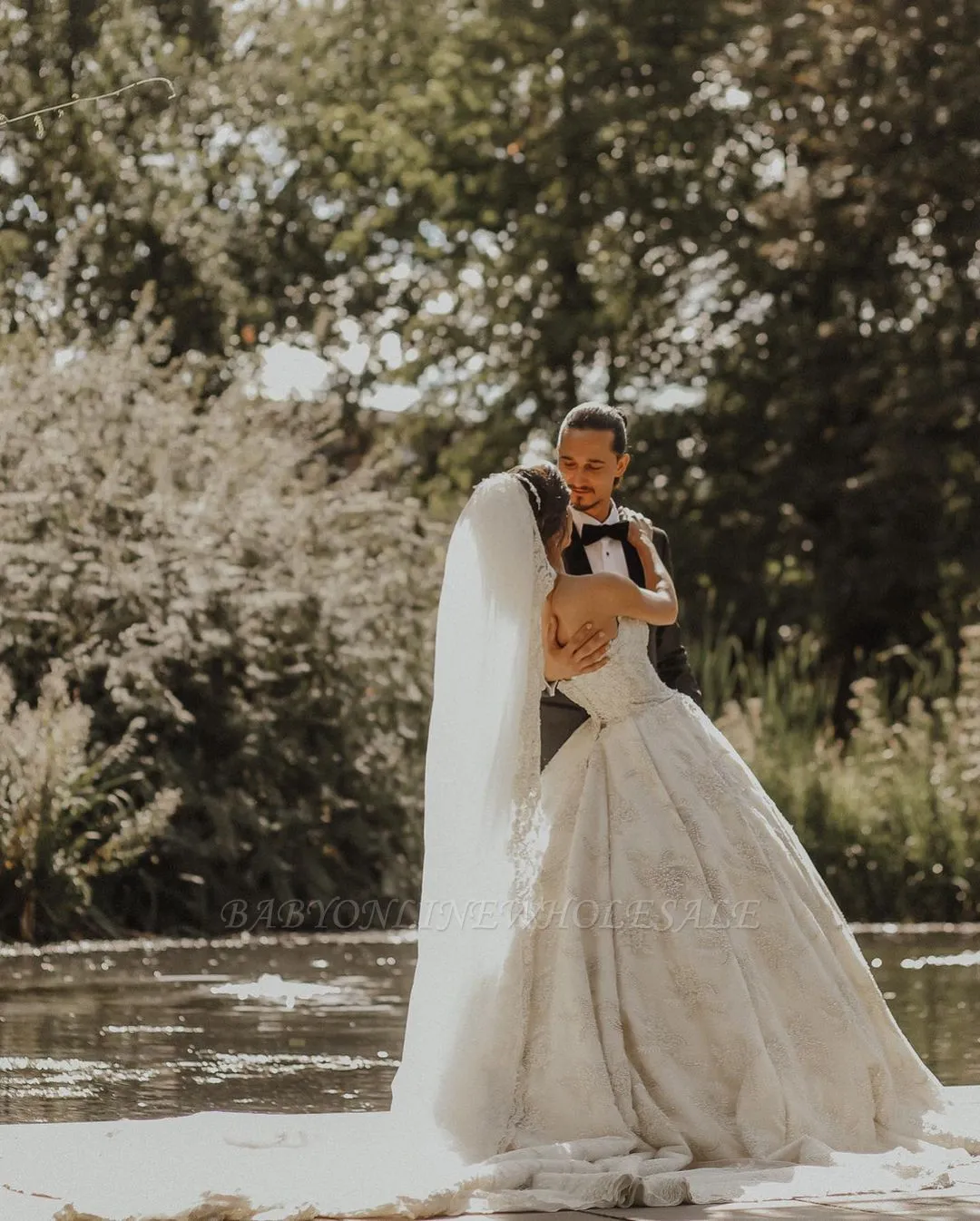 Gorgeous Ivory Off-the-shoulder Lace Long Sleeves Wedding Dress