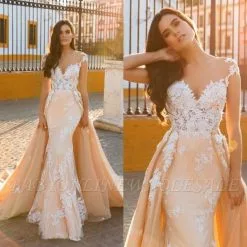 Be the first to review “Elegant V-Neck Lace Applique Mermaid Bridal Gowns|2021 Cap SleeveWedding Dress With Detachable Train” Cancel reply