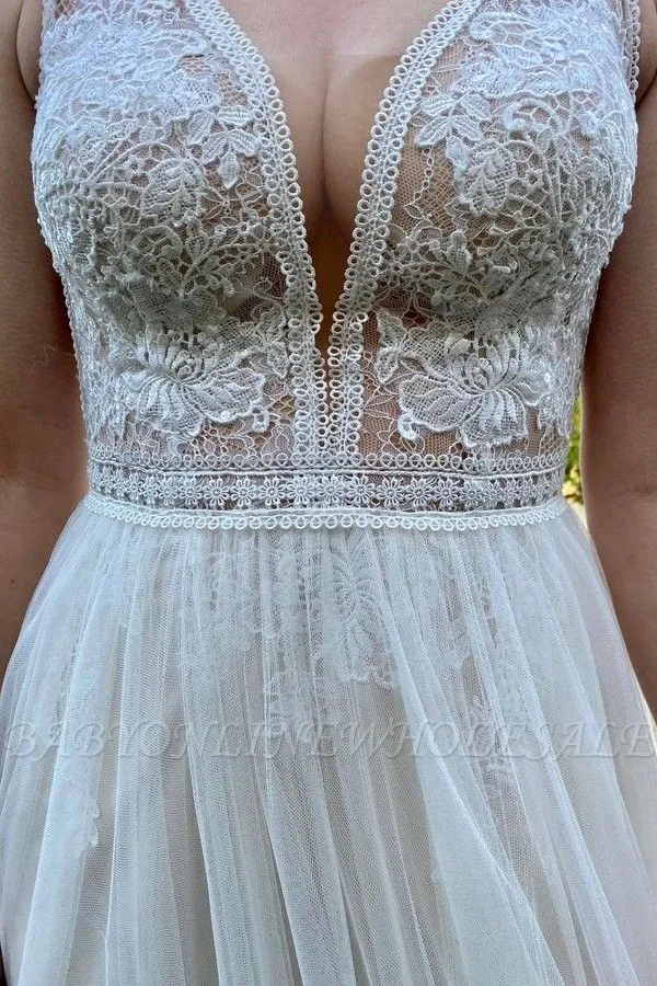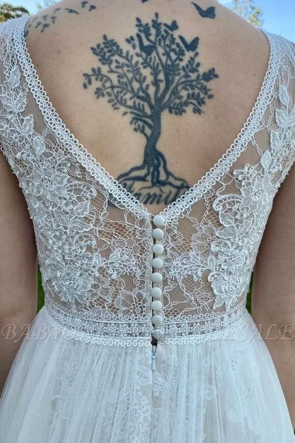 Be the first to review “Elegant V-neck Tulle Sleeveless Wedding Dress” Cancel reply