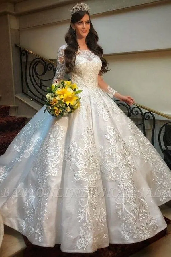 Babyonlinewholesale offers Elegant White Crew Neck Aline Wedding Dress with Lace Appliques at a good price from Same as Picture,White,Ivory,Champagne,Black,Satin to A-line Floor-length them. Stunning yet affordable Long Sleeves .