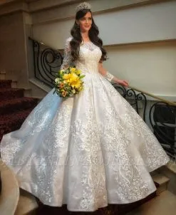 Gorgeous Long Sleeves Ball Gown Floral Lace Tulle Aline Bridal Gown