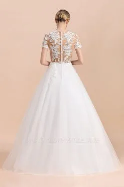 Be the first to review “Elegant White Short Sleeves Ball Gown Buttons Lace Applique Wedding Dress” Cancel reply