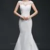 A-Line Applique Court Train Sleeveless Tulle Scoop Wedding Dresses