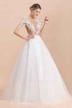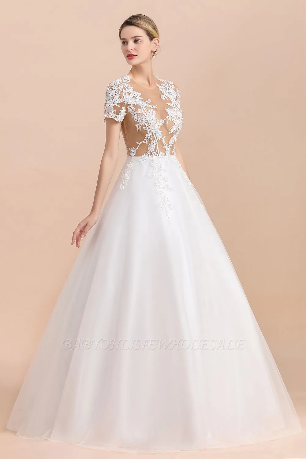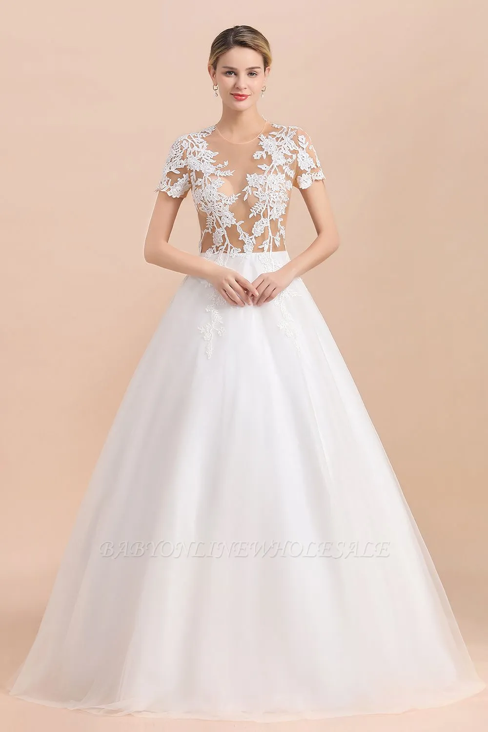 Babyonlinewholesale offers Elegant White Short Sleeves Ball Gown Buttons Lace Applique Wedding Dress at a cheap price from Satin,Tulle to A-line Floor-length them. Stunning yet affordable Short Sleeves .