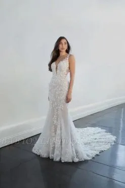 Be the first to review “Exquisite Floor Length Deep V-Neck Sleeveless Mermaid Lace Wedding Dress With Chapel Train” Cancel reply