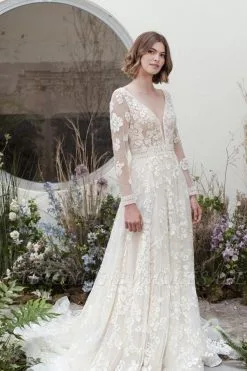 Be the first to review “Exquisite Floor Length Sweetheart Long Sleeves A Line Hollow Lace Wedding Dress With Chapel Train” Cancel reply
