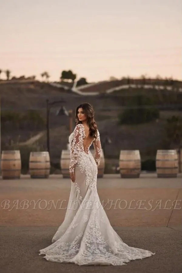 Babyonlinewholesale offers Fabulous Floor Length Sweetheart Long sleeves Mermaid Lace Tulle Wedding Dress with Applique at the lowest price from Same as Picture,White,Ivory,Champagne,Black,Lace to Mermaid Floor-length them. Stunning yet affordable Long Sleeves