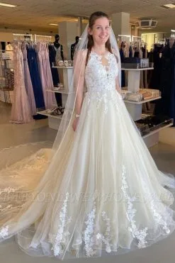 Be the first to review “Floral Lace ALine Bridel Dress Tulle Appliques Long Wedding Dress” Cancel reply
