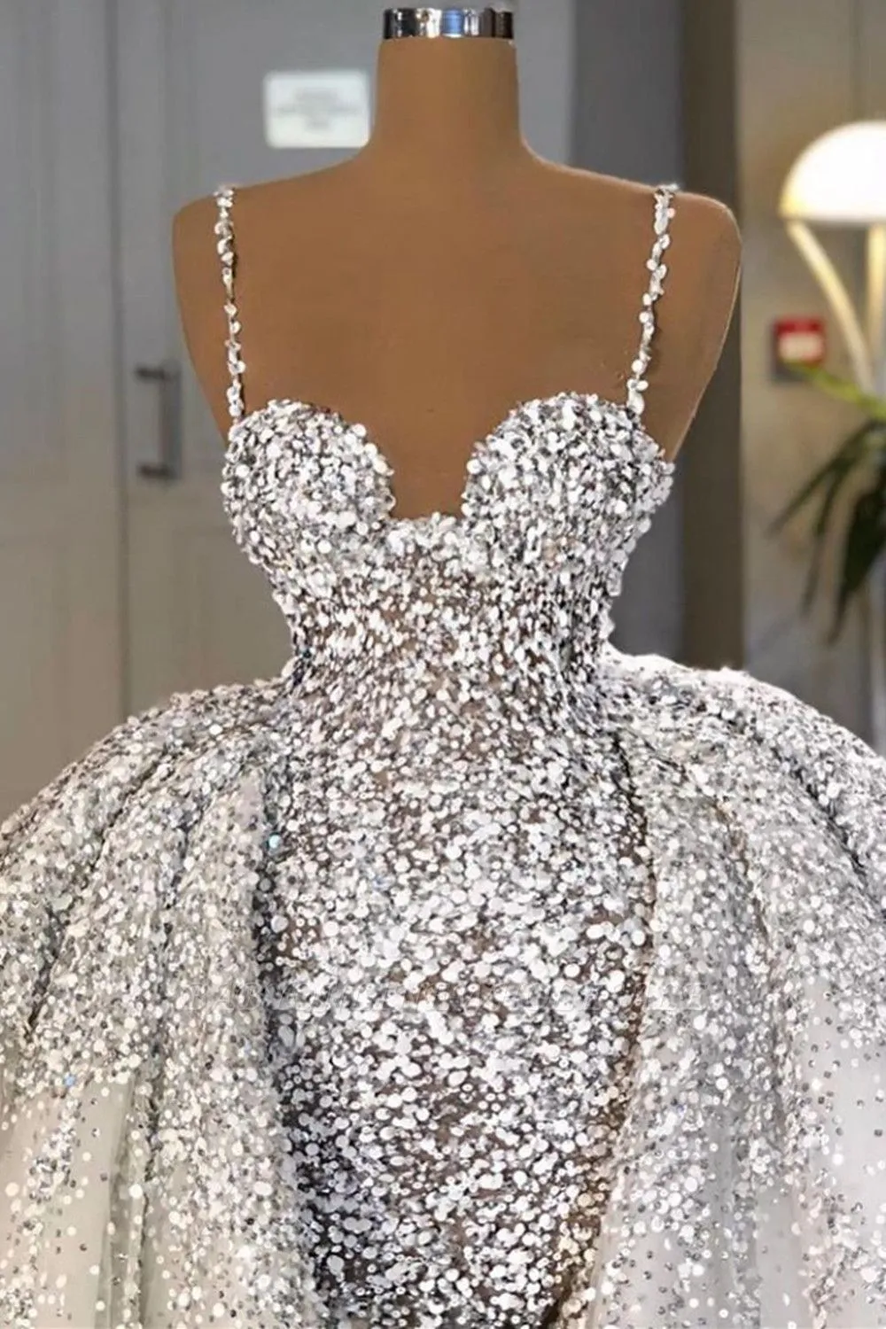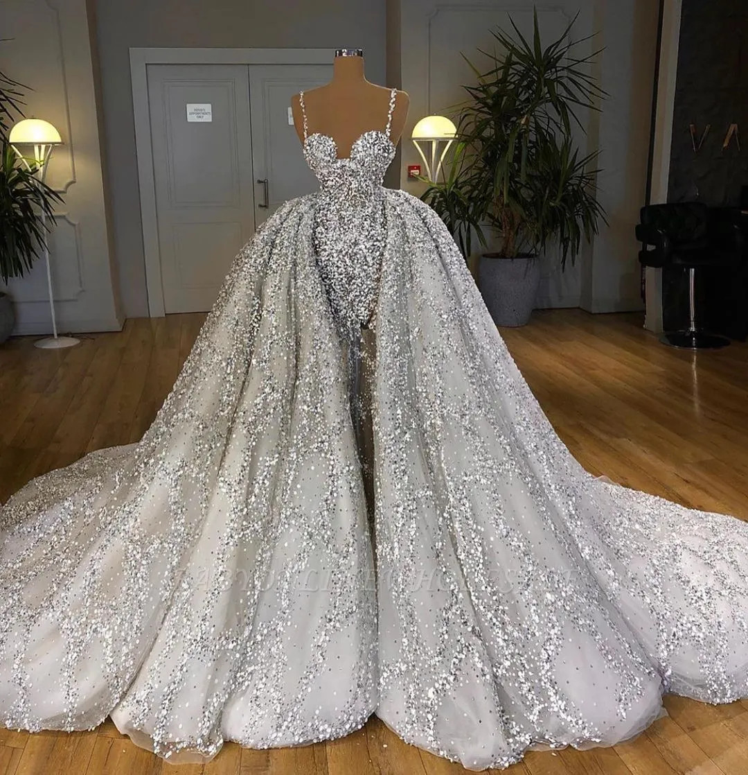 Looking for in Tulle, Mermaid style, and Gorgeous Sequined work? Babyonlinewholesale has all covered on this elegant Glitter Mermaid Ball Gown Spaghetti Sequins Tulle party Gown.