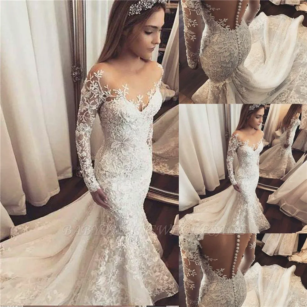 V-neck Sleeveless Mermaid Wedding Dresses Sexy Lace Appliques Bridal Gown WE0196