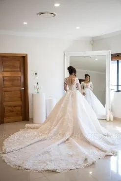 | product name | Gorgeous Long Sleeves Soft Floral Lace Bridal Gown V-Neck Wedding Dress |