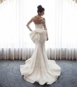 Be the first to review “Gorgeous Mermaid Lace Wedding Dress With Sleeves | Bowknot Detachable Overskirt Bride Dress” Cancel reply