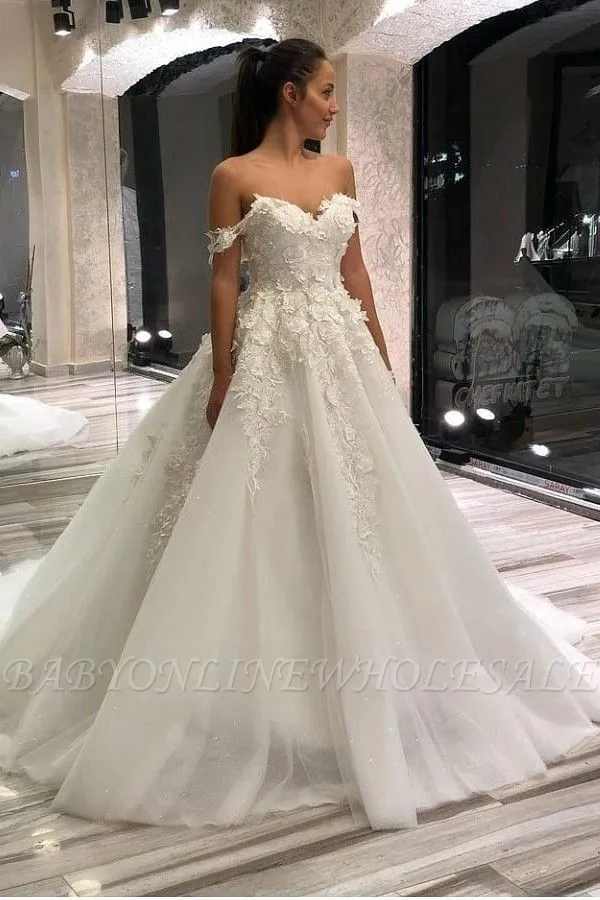| product name | Gorgeous Off Shoulder 3D Floral A-line Wedding Dress Tulle Bridal Dress |