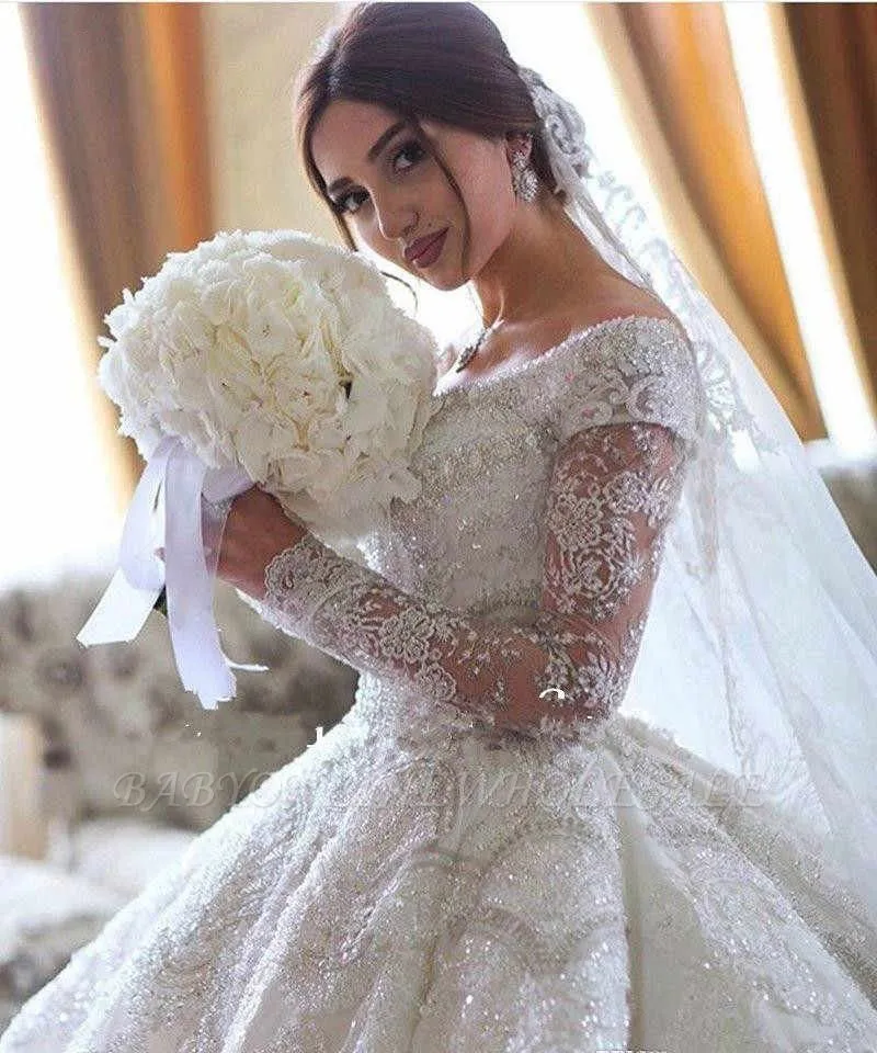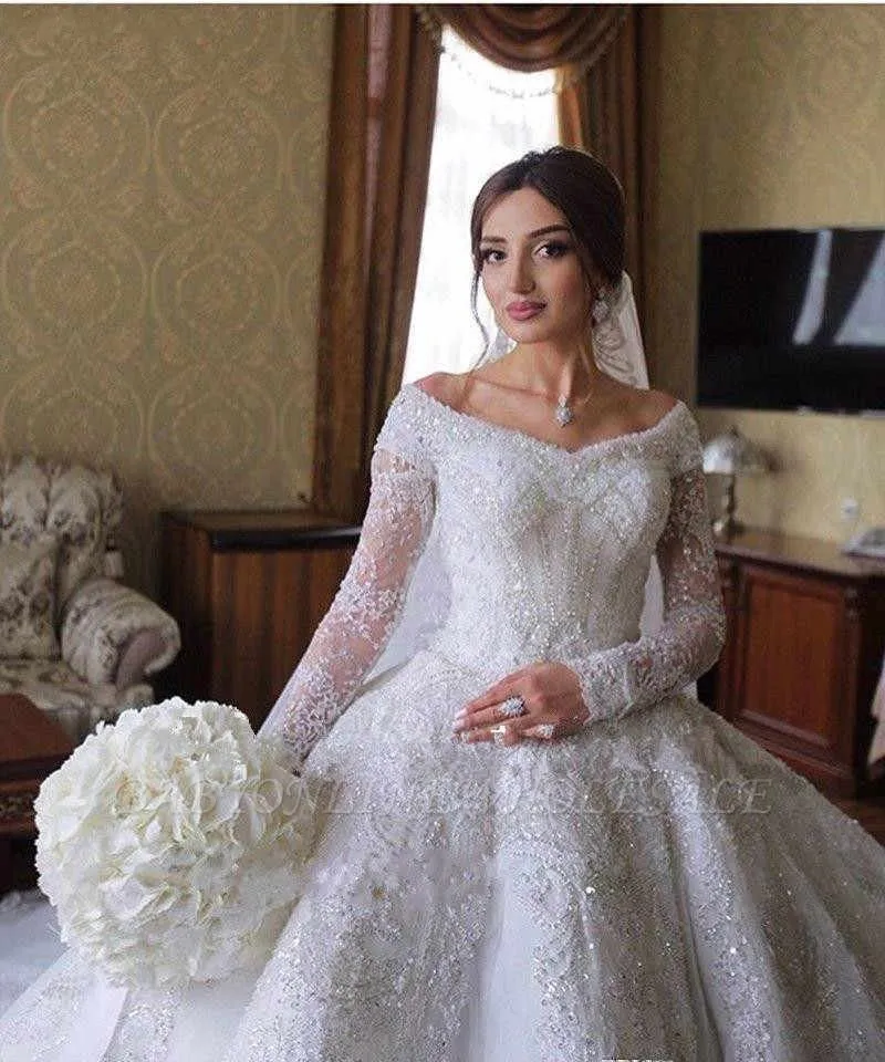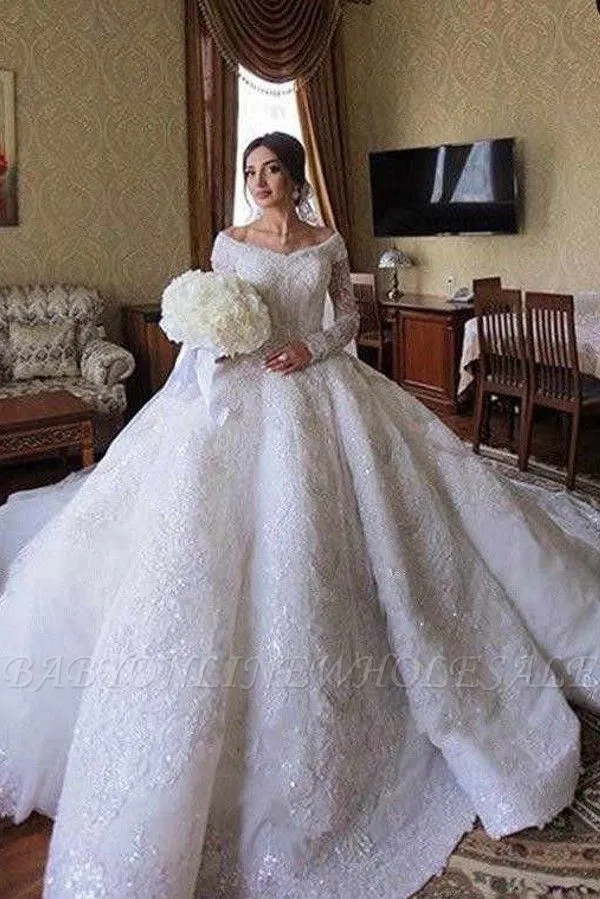 | product name | Gorgeous Off Shoulder Long Sleeves Beadings Princess Ball Gown |