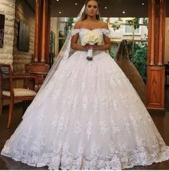 | product name | Gorgeous Off-the-Shoulder Tulle Lace Bridal Gown with Catheral Train |