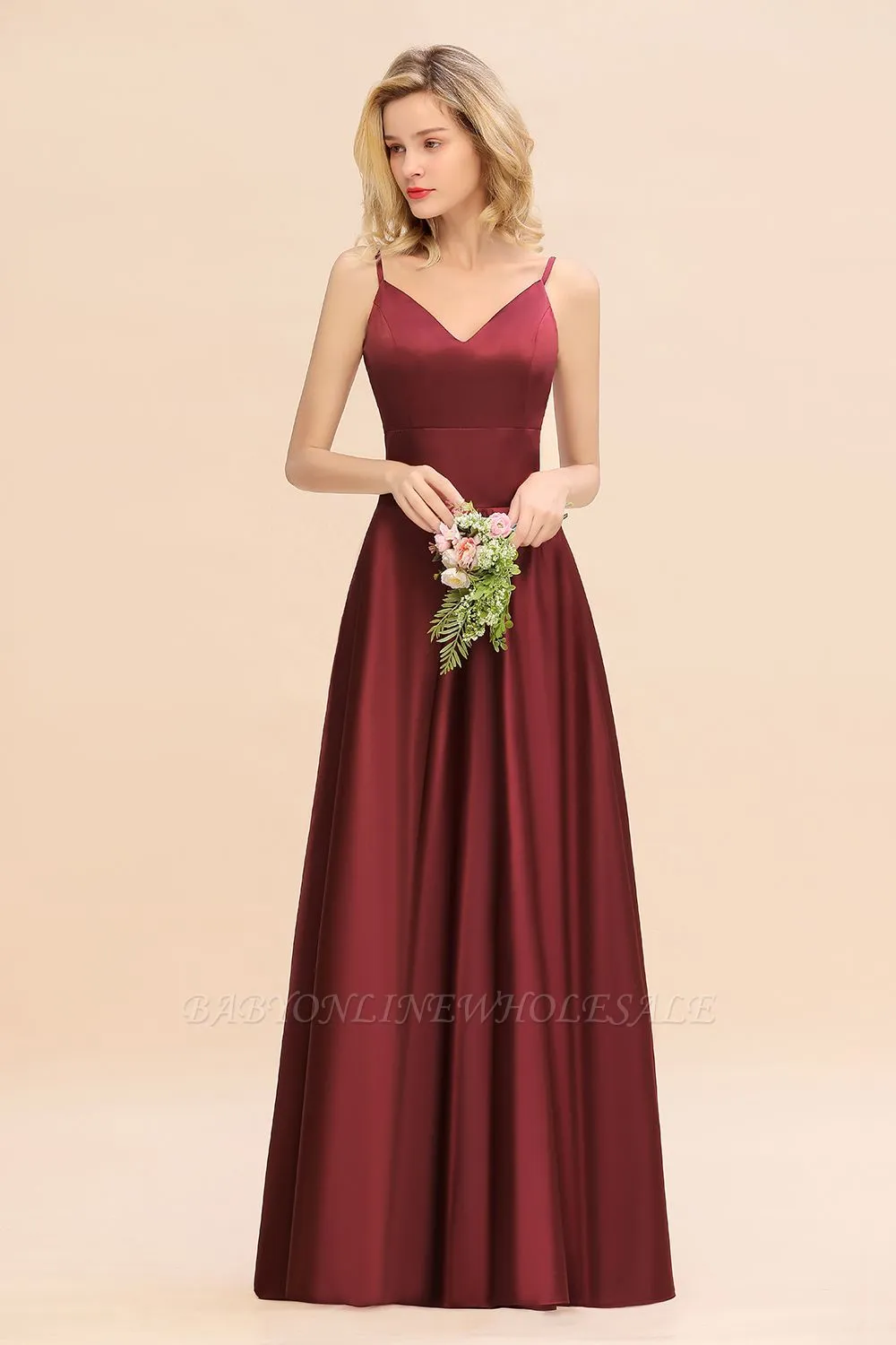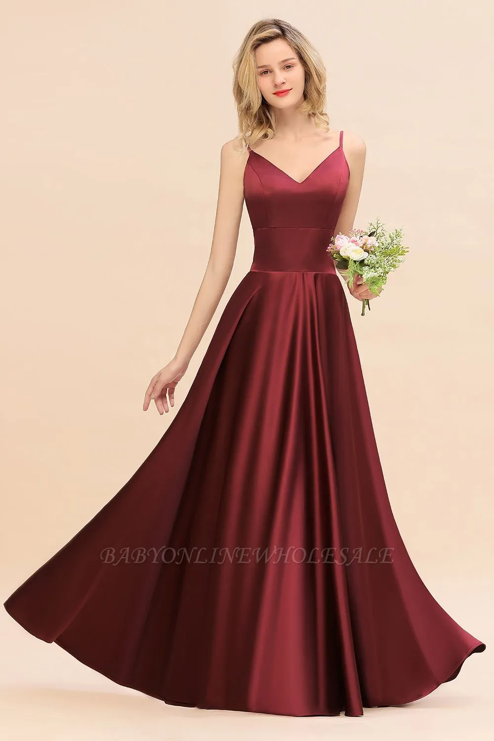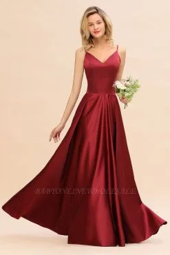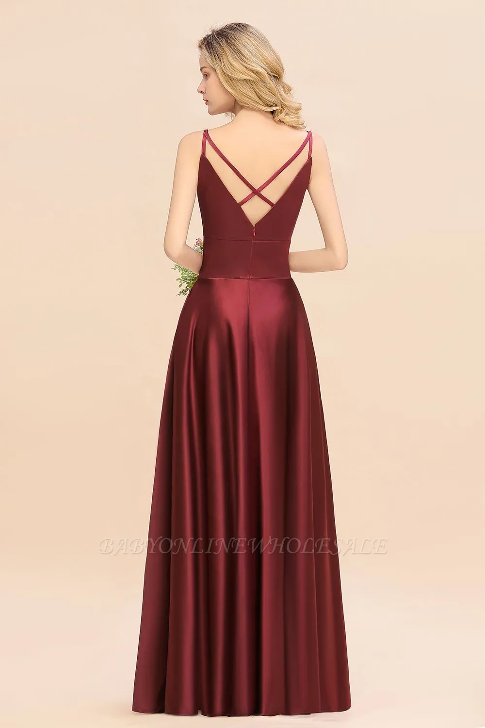 Babyonlinewholesale offers Gorgeous V-Neck Satin Long Bridesmaid Dress Cross Back Straps A-line Formal Dress at a good price from White,Ivory,Blushing Pink,Candy Pink,Pearl Pink,Dusty Rose,Watermelon,Red,Fuchsia,Burgundy,Chocolate,Brown,Gold,Champagne,Orange,Taupe,Yellow,Daffodil,Regency,Grape,Lilac,Lavender,Sky Blue,Pool,Ocean Blue,Royal Blue,Ink Blue,Dark Navy,Black,Silver,Dark Green,Jade,Peacock,Green,Sage,Mint Green,Satin to A-line Floor-length them. Stunning yet affordable Sleeveless Bridesmaid Dresses