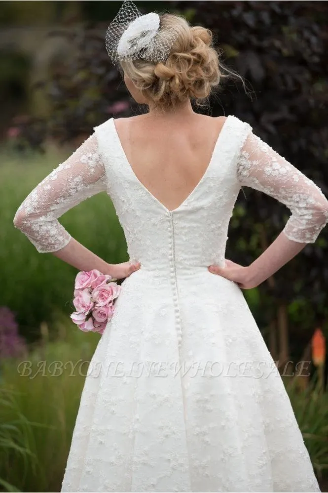 Babyonlinewholesale offers Gorgeous White 2/3 sleeves V-neck Short Garden Wedding Dress at a cheap price from Same as Picture,White,Ivory,Champagne,Black, Tulle to A-line Tea-length them. Stunning yet affordable Long Sleeves .