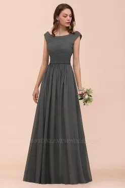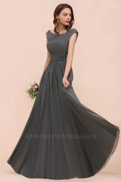 The gorgeous Grey Cap Sleeves 100D Chiffon Long Evening Dress with Side Slit will stun every girl. The 100D Chiffon dress will add extra elegance to your wholesale look.