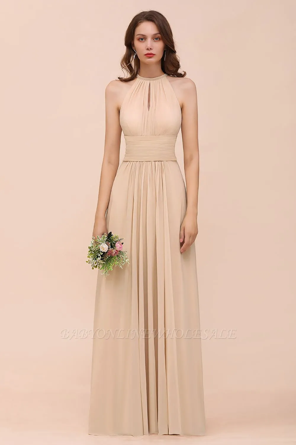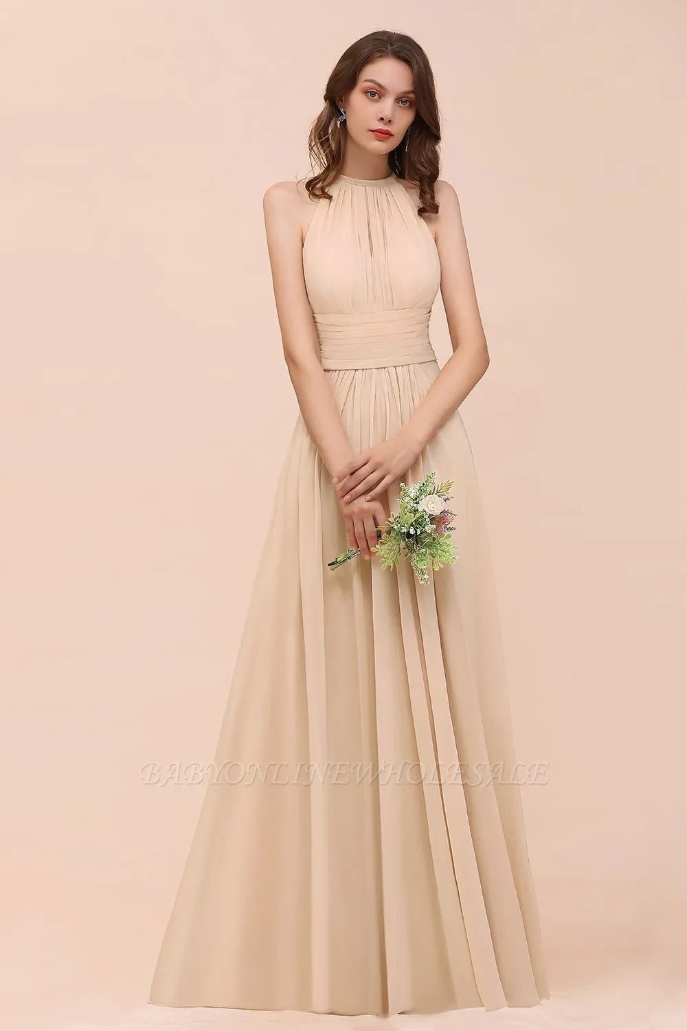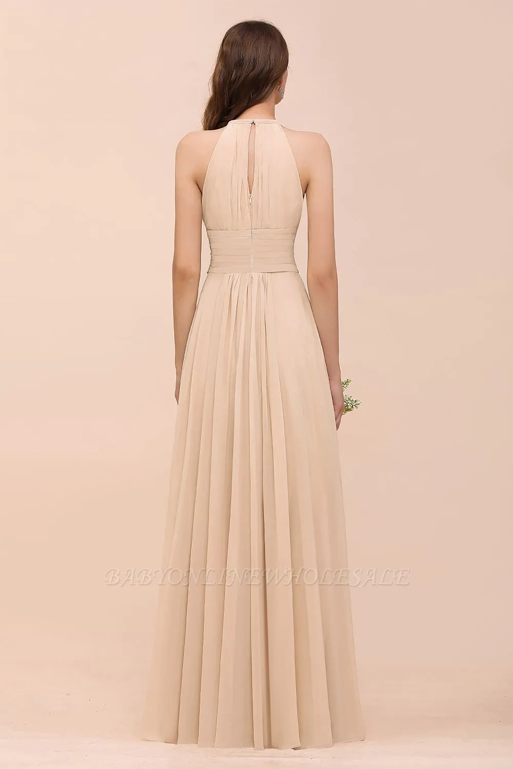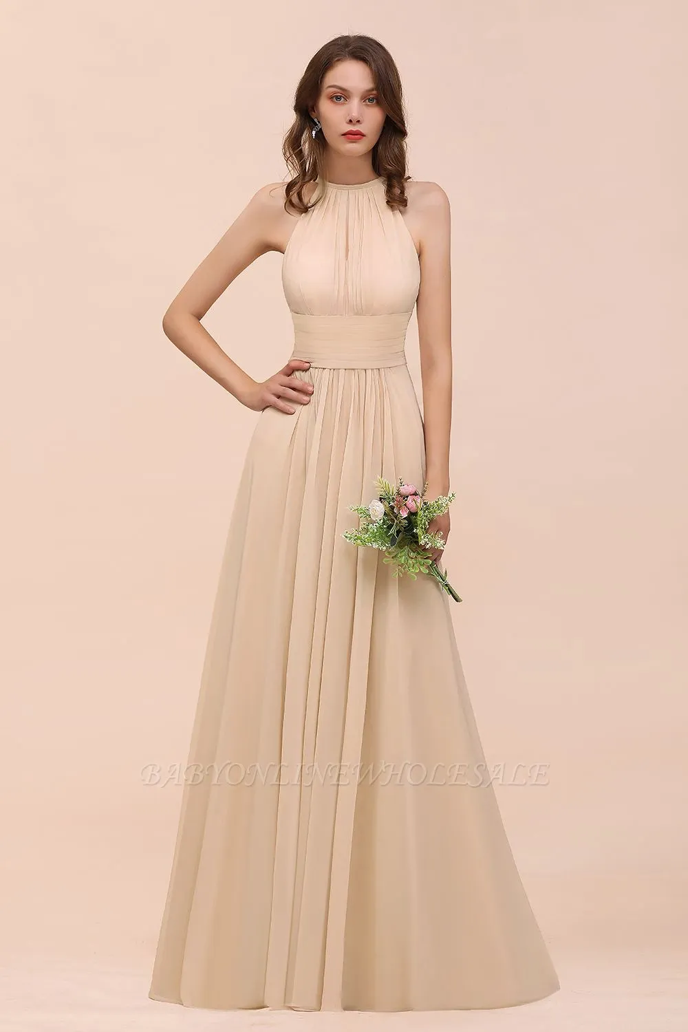 Babyonlinewholesale offers Halter Aline Soft Chiffon Bridesmaid Dress Long Wedding Party Dress at a good price from White,Ivory,Blushing Pink,Candy Pink,Pearl Pink,Dusty Rose,Watermelon,Red,Fuchsia,Burgundy,Chocolate,Brown,Gold,Champagne,Orange,Taupe,Yellow,Daffodil,Regency,Grape,Lilac,Lavender,Sky Blue,Pool,Ocean Blue,Royal Blue,Ink Blue,Dark Navy,Black,Silver,Dark Green,Jade,Peacock,Green,Sage,Mint Green,Dusk,Mist,Stormy,Dusty Blue,Dusty Sage,Orchid,Wisteria,Mulberry,Coral,Steel Grey,Cabernet,Rust,Emerald,Vintage Mauve,100D Chiffon to A-line Floor-length them. Stunning yet affordable Sleeveless Bridesmaid Dresses.