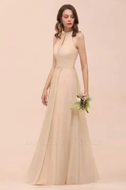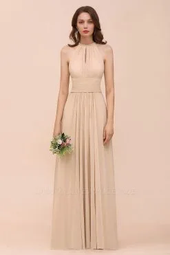 | product name | Halter Aline Soft Chiffon Bridesmaid Dress Long Wedding Party Dress |
