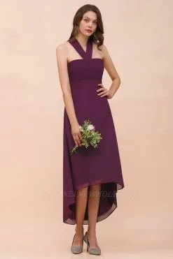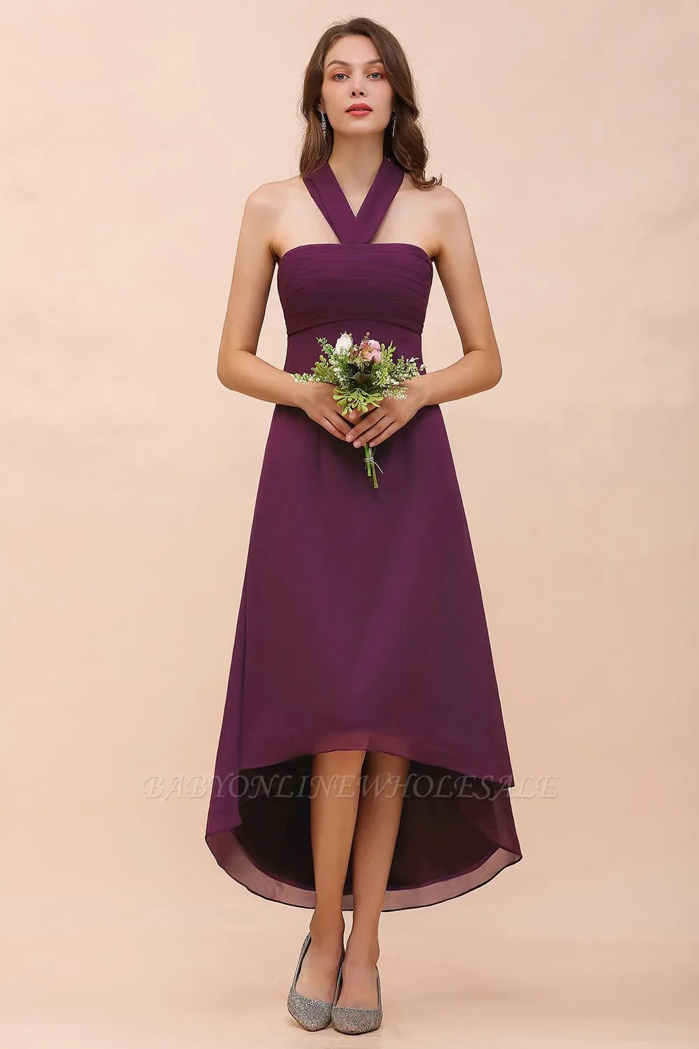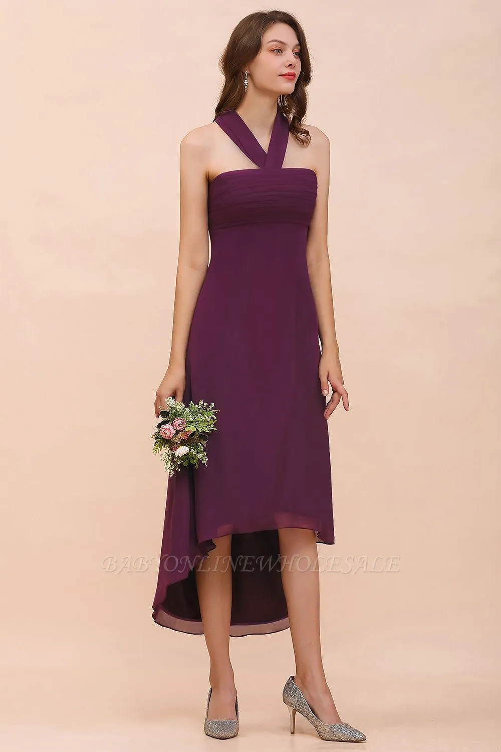 Looking for Bridesmaid Dresses in 100D Chiffon, A-line style, and Gorgeous Draped work? Babyonlinewholesale has all covered on this elegant Halter Chiffon Hi-Lo Party Dress for Wedding Women Bridesmaid Dress.