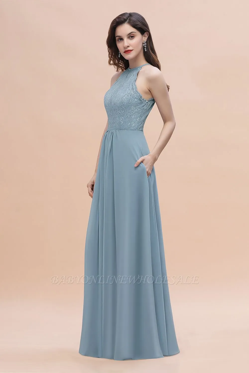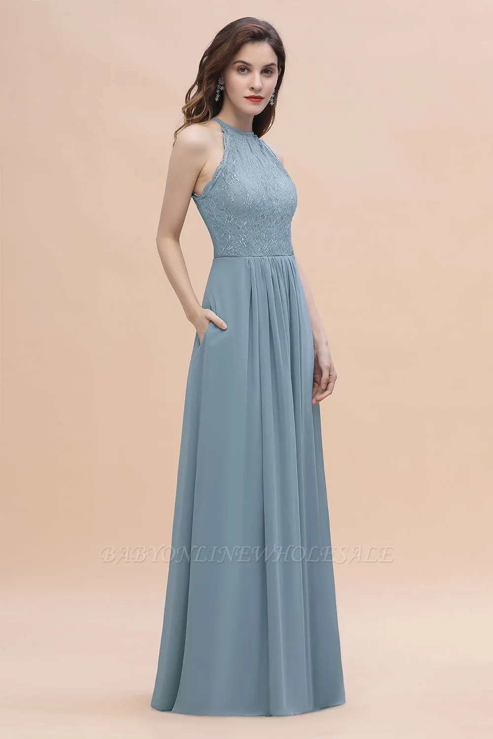 Babyonlinewholesale offers Halter Floral Lace Wedding Guest Dress Sleeveless Chiffon Long Formal Dress online at an affordable price from 100D Chiffon to A-line Floor-length skirts. Shop for gorgeous Sleeveless Bridesmaid Dresses collections for your big day.