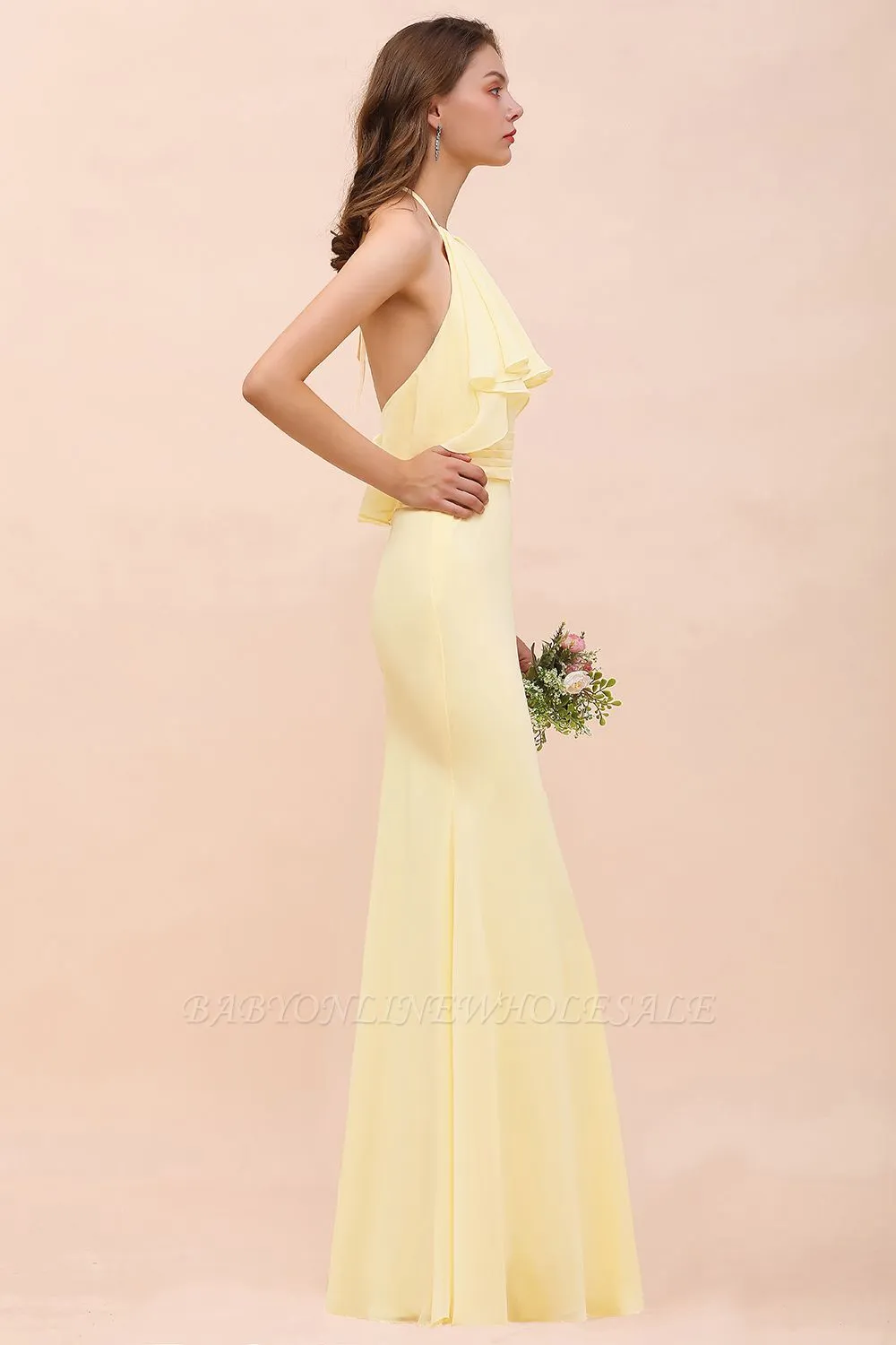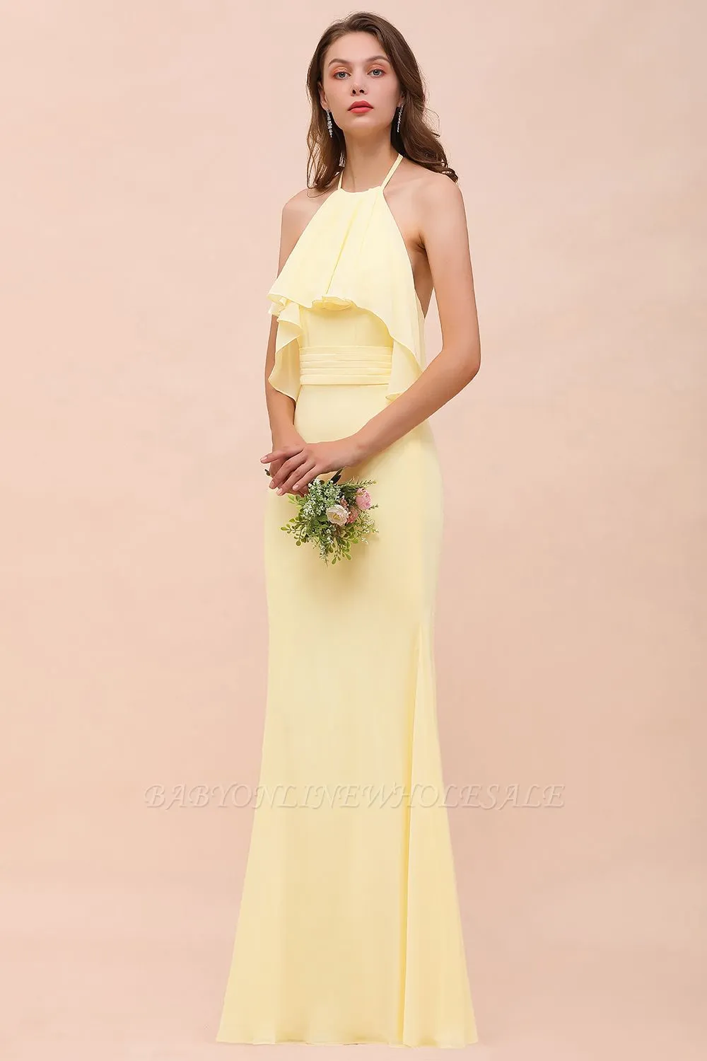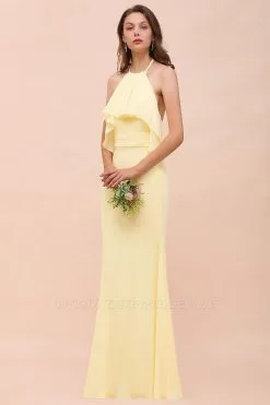 Babyonlinewholesale offers Halter Goose yellow Ruffle Chiffon Mermaid Bridesmaid Dress Floor Length online at an affordable price from 100D Chiffon to A-line Floor-length skirts. Shop for gorgeous Sleeveless Bridesmaid Dresses collections for your big day.