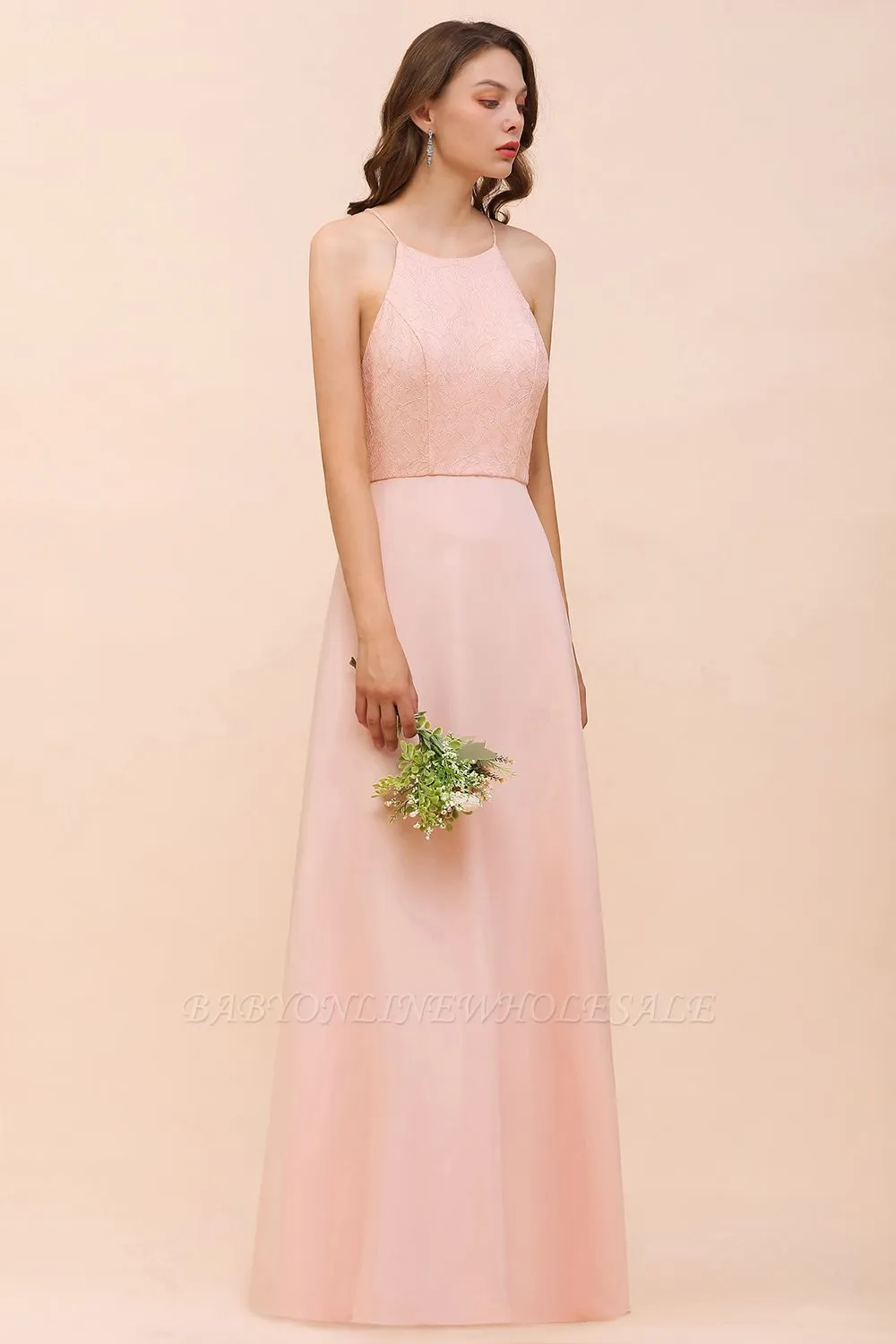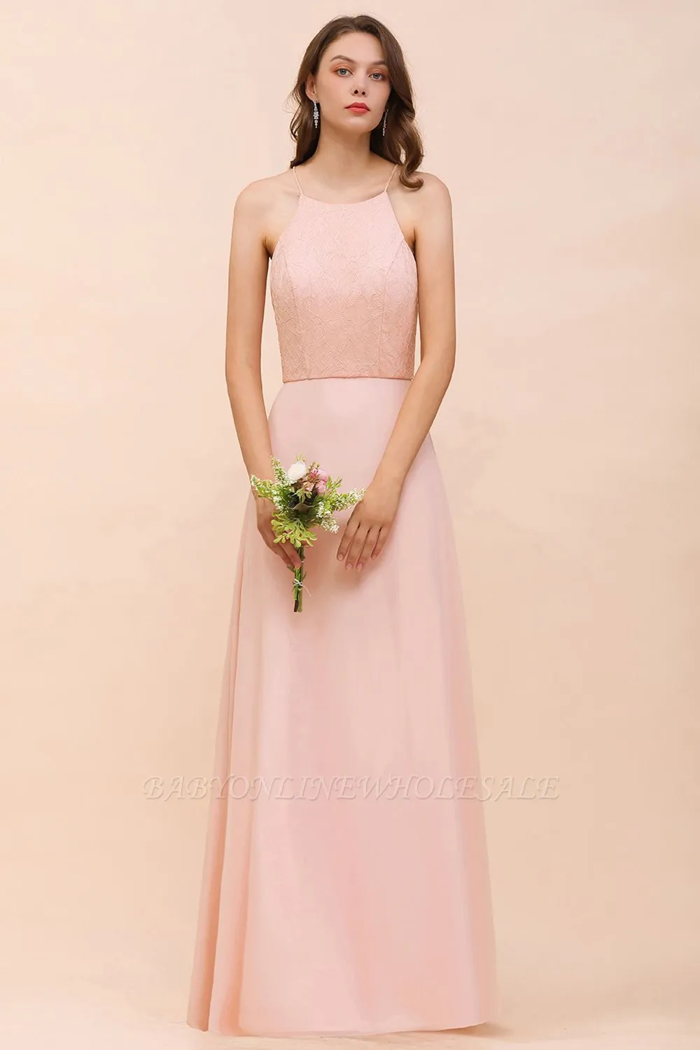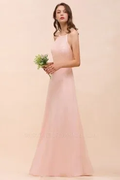 Looking for Bridesmaid Dresses in 100D Chiffon, Mermaid style, and Gorgeous Lace work? Babyonlinewholesale has all covered on this elegant Halter Lace Chiffon Aline Bridesmaid Dress Long Spcial Occasion Dress.