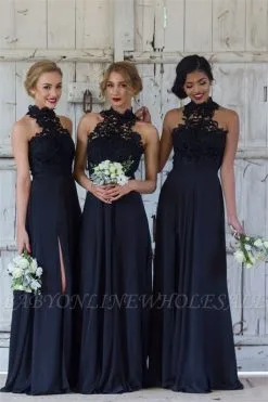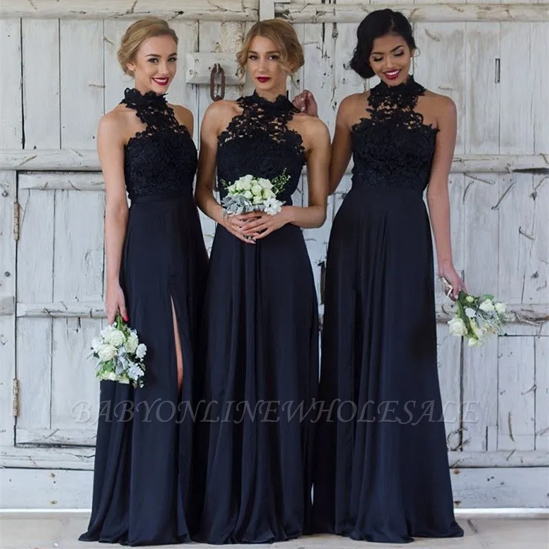 | product name | Halter Lace Chiffon Bridesmaid Dress with Split Sleeveless Sexy Maid of Honor Dresses BA7430 |