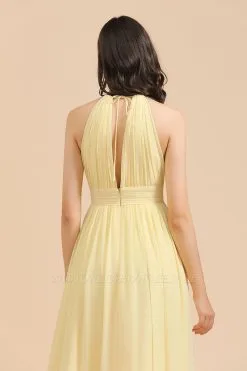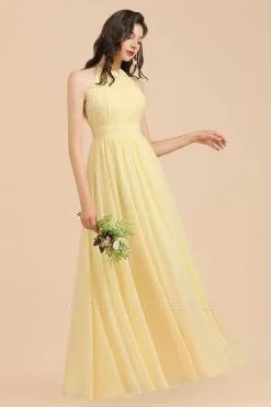 Be the first to review “Halter Pleated Chiffon Daffodil Bridesmaid Dress Side Slit Long Wedding Party Dress” Cancel reply