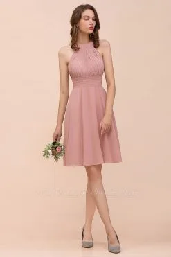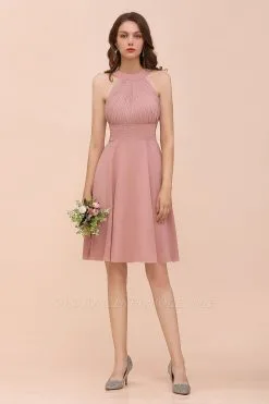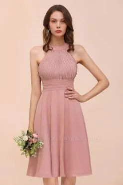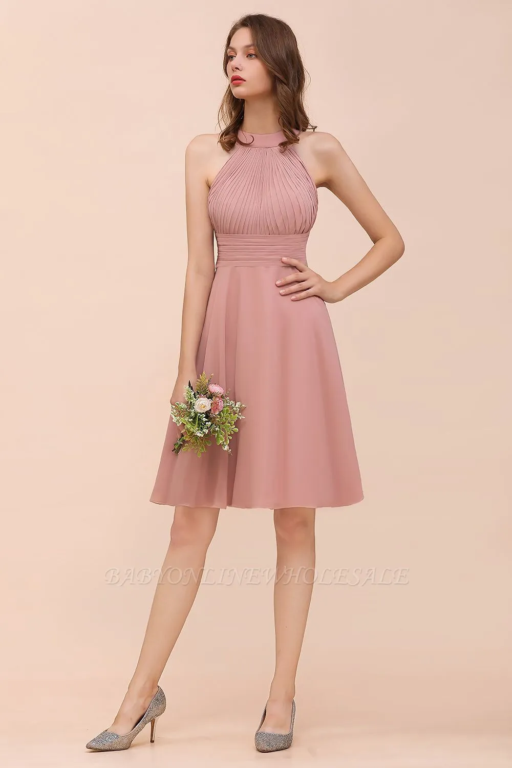 Looking for in 100D Chiffonstyle, and Gorgeous Draped work? Babyonlinewholesale has all covered on this elegant Halter Soft Chiffon Aline Short Bridesmaid Dress.