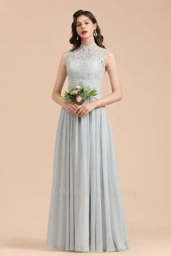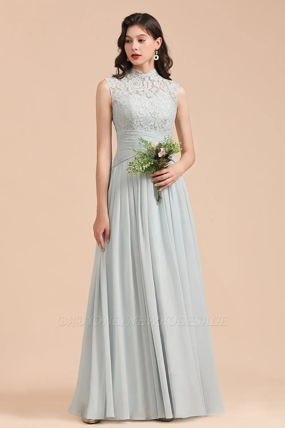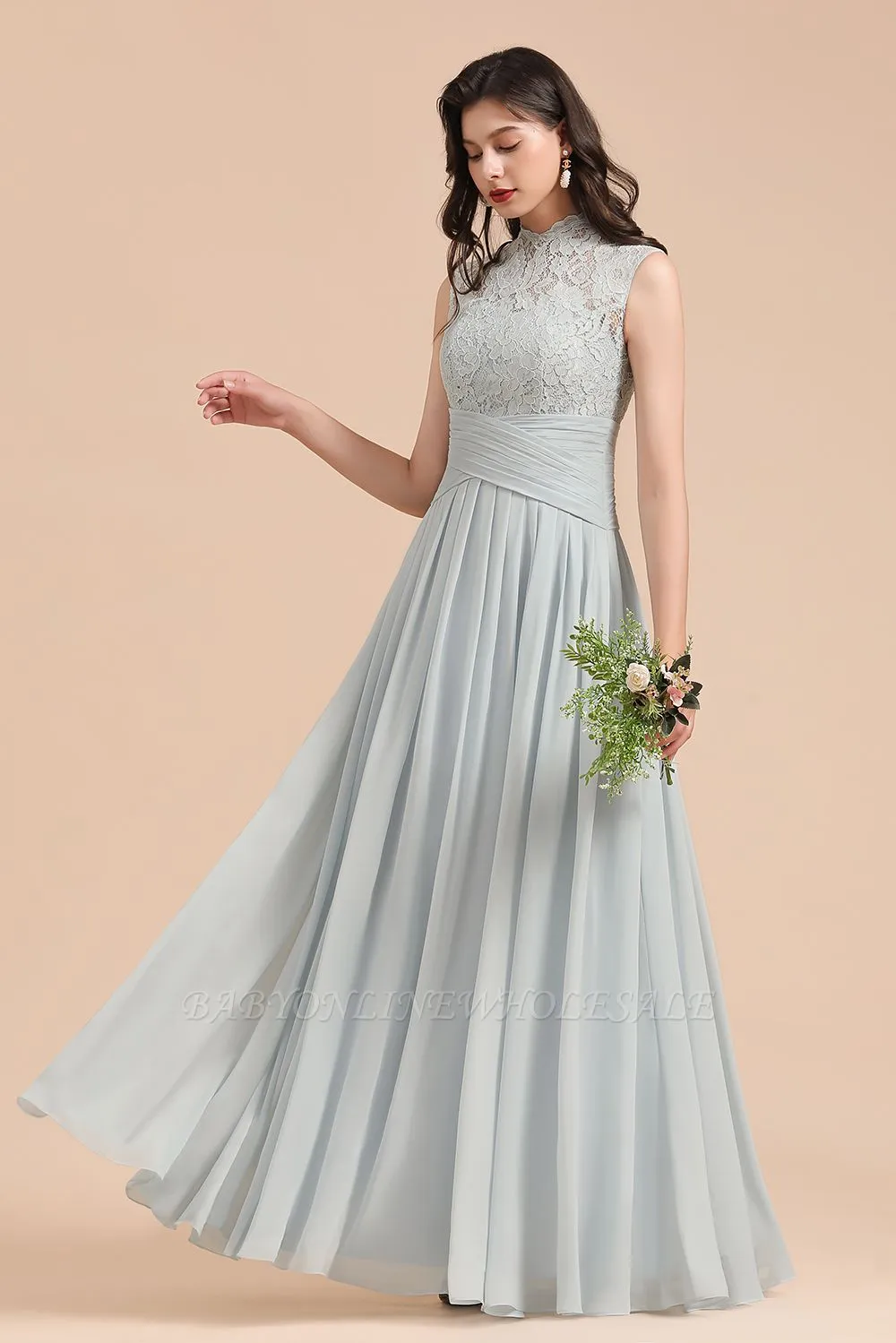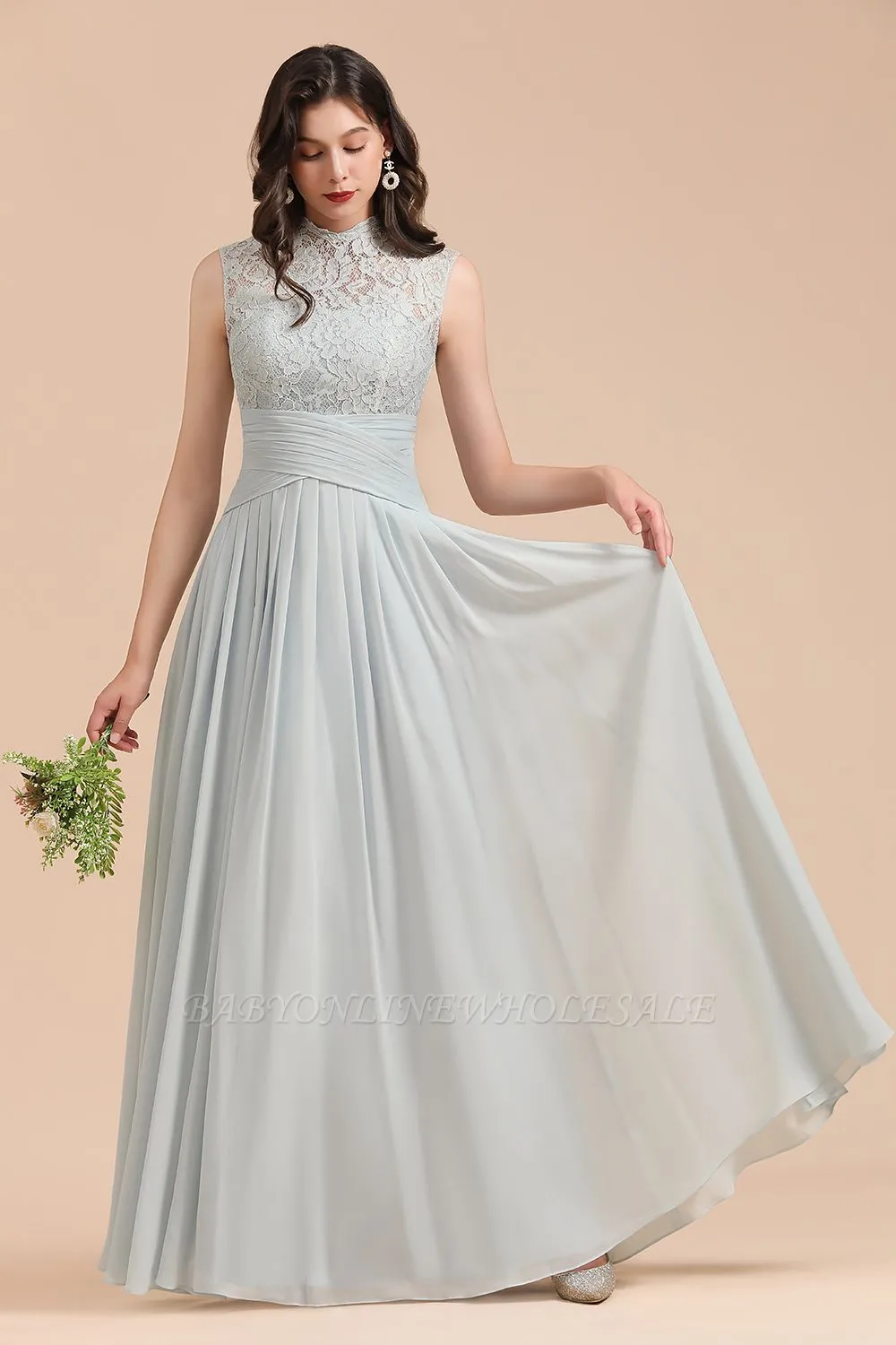 Looking for in 100D Chiffon, A-line style, and Gorgeous Lace work? Babyonlinewholesale has all covered on this elegant High Neck Floral Lace Aline Bridesmaid Dress Floor Length Chiffon Wedding Party Dress.