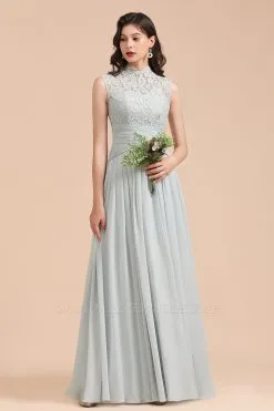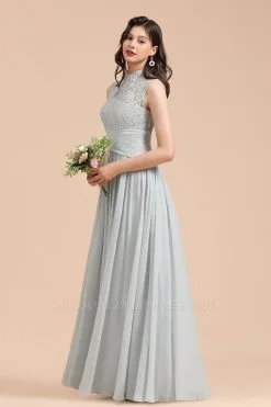 | product name | High Neck Floral Lace Aline Bridesmaid Dress Floor Length Chiffon Wedding Party Dress |