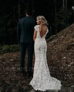 Looking for in Lace, Mermaid style, and elegant Lace,Ruffles work? Babyonlinewholesale has all covered on this unique Keyhole open back hot beach wedding dress with court train.