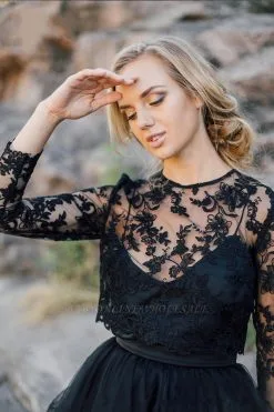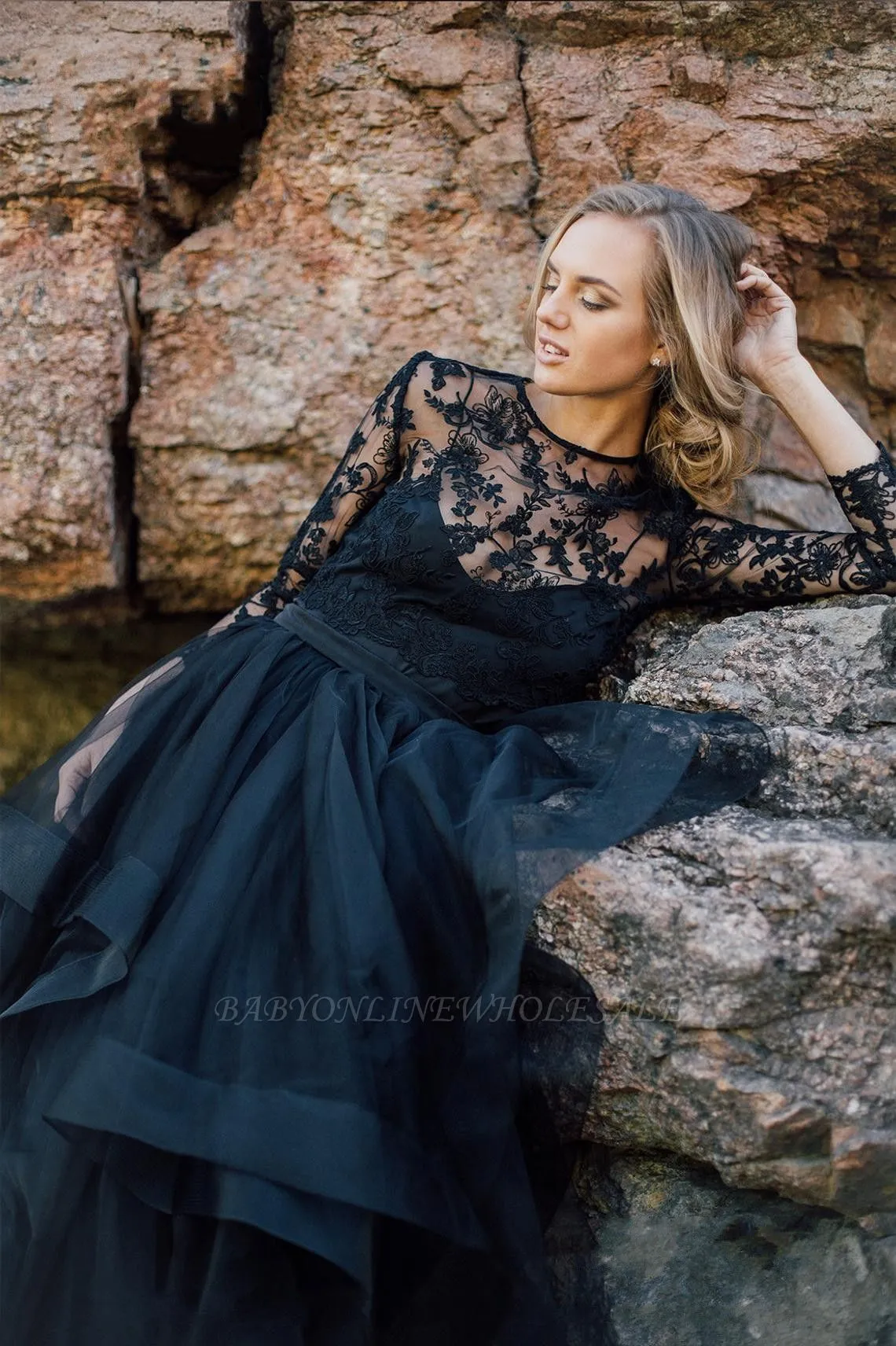 Looking for in Tulle, A-line style, and Gorgeous Lace work? Babyonlinewholesale has all covered on this elegant Long SLeeves Black Tulle Wedding Dress Floral Lace Aline Formal Dress