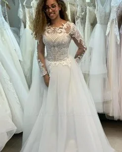 Babyonlinewholesale offers Long sleeves Illusion neck A-line Long sleeves Lace Princess Wedding Dress online at an affordable price from Lace to A-line Floor-length skirts. Shop for gorgeous Long Sleeves collections for your bridal party.