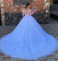 Elegant Lace Bridal A-line V-Neck Long Sleeves Wedding Dresses