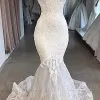 Off Shoulder Sweetheart Mermaid Wedding Gown With Chapel Drag Skirt