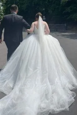 Luxury Ivory Ball Gown Off The Shoulder V-neck Wedding Dress