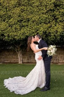 Sweetheart White Lace Mermaid Wedding Dress With Court Train