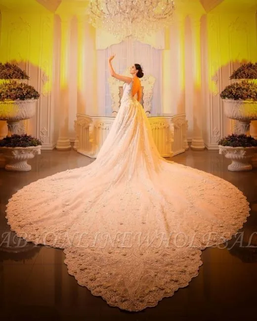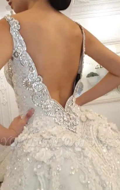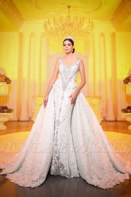 | product name | Luxurious V-Neck Crystals Mermaid Bridal Gown Long Sweep Train |
