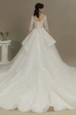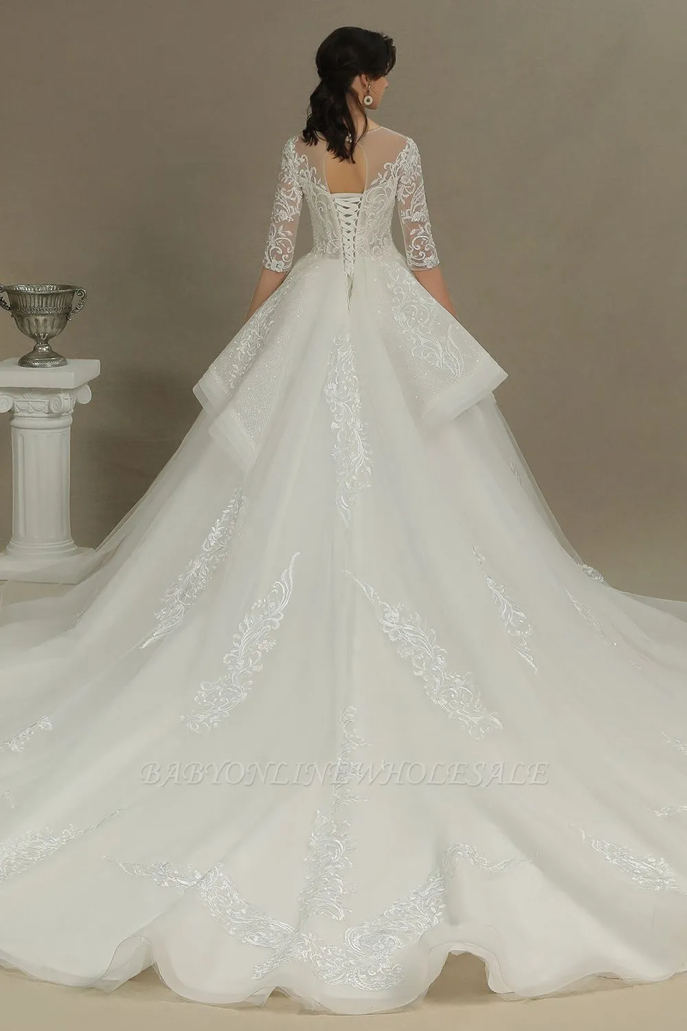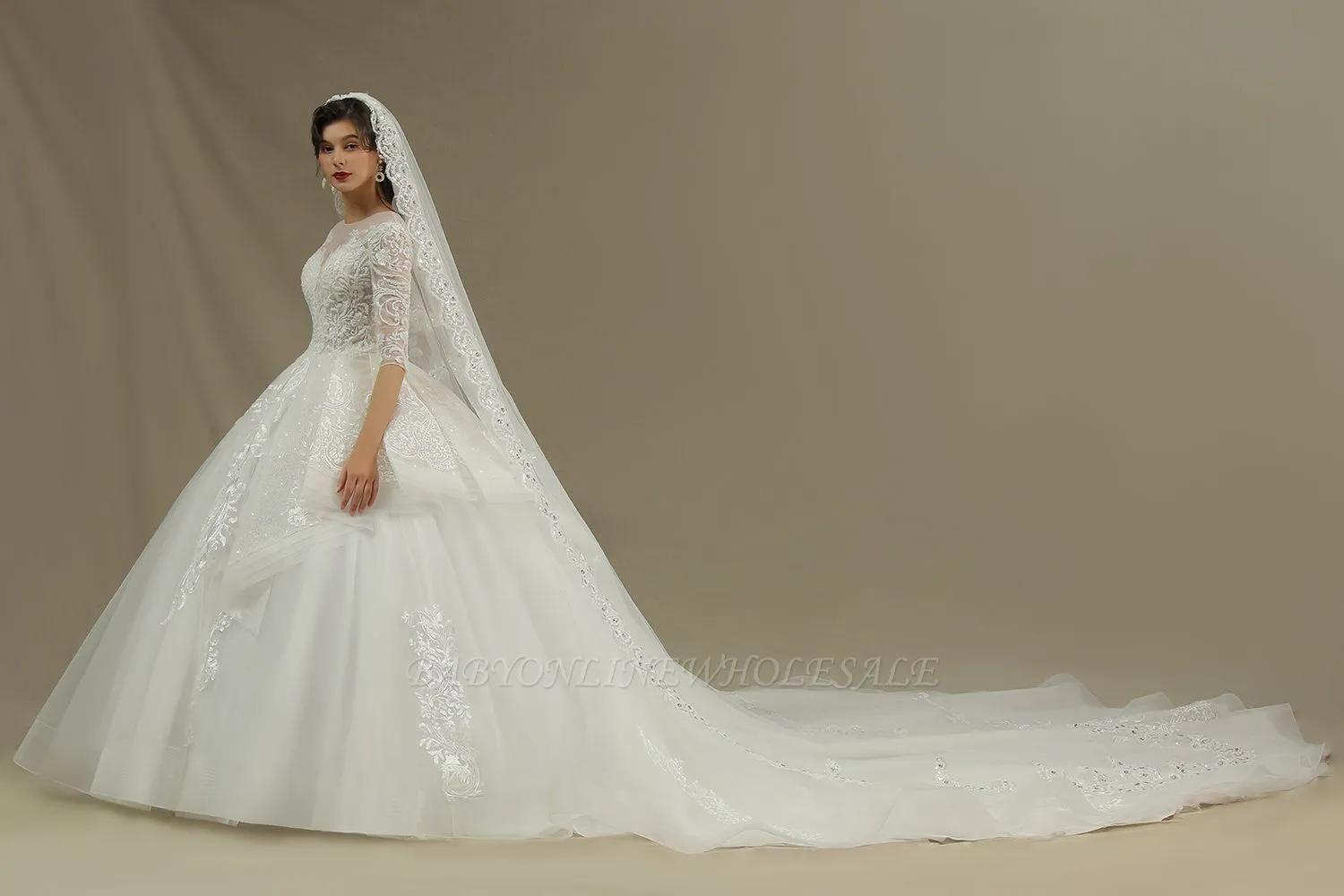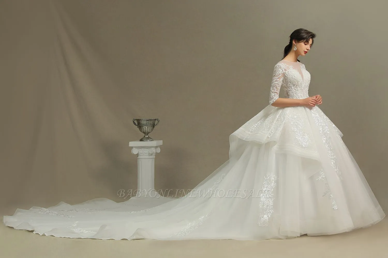 | product name | Luxury Floral Lace Bridal Gown Crew Neck Long Sleeves Aline Spring Garden Ball Gown |